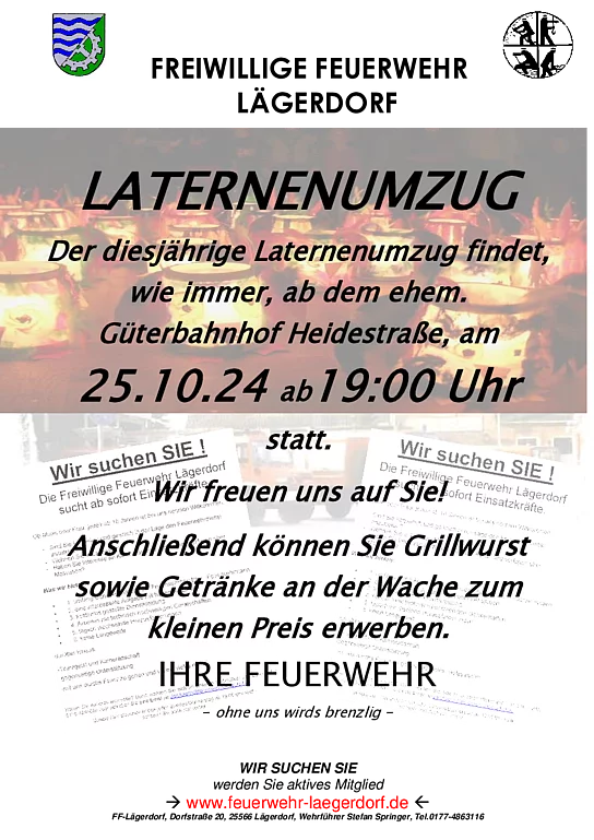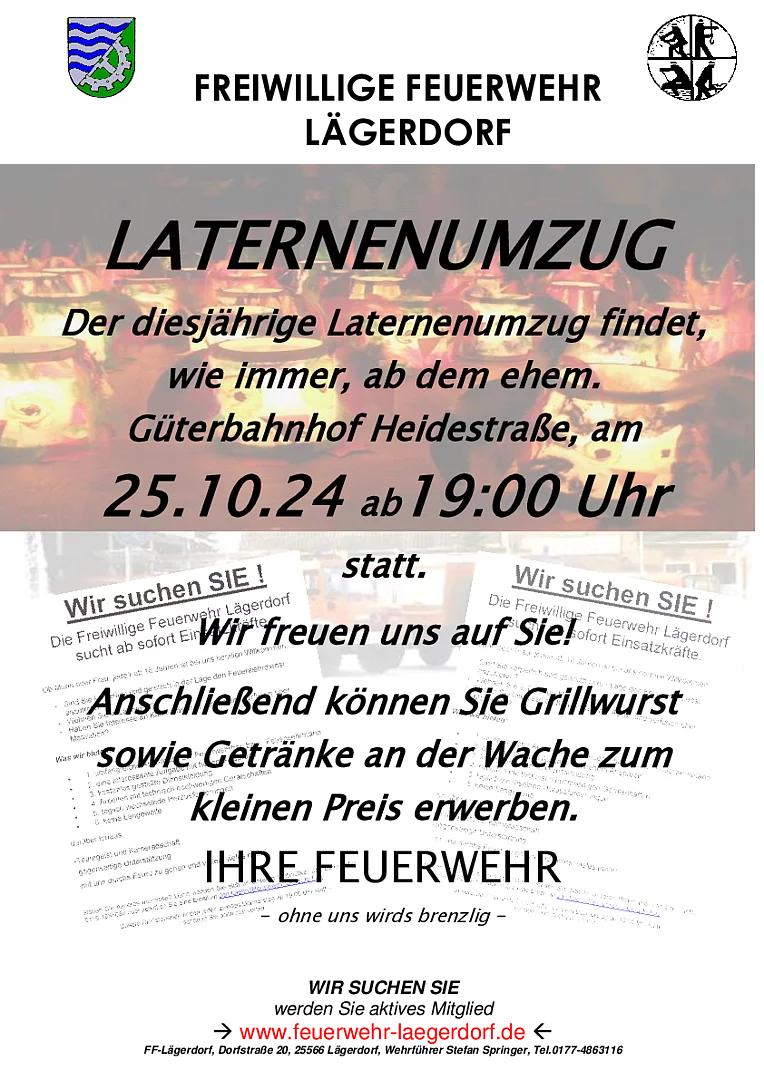 Die Freiwillge Feuerwehr Lägerdorf lädt zum Laternenumzug ein.