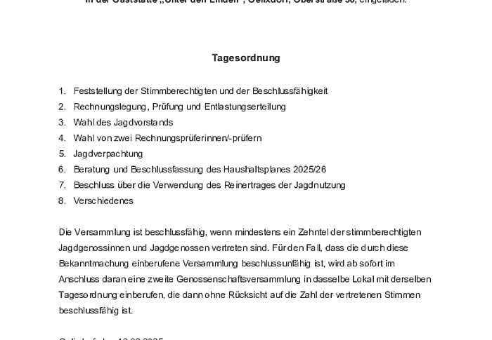 Bekanntmachung Nr. 10/2025 - Haushaltssatzung der Gemeinde Oelixdorf für das Haushaltsjahr 2025